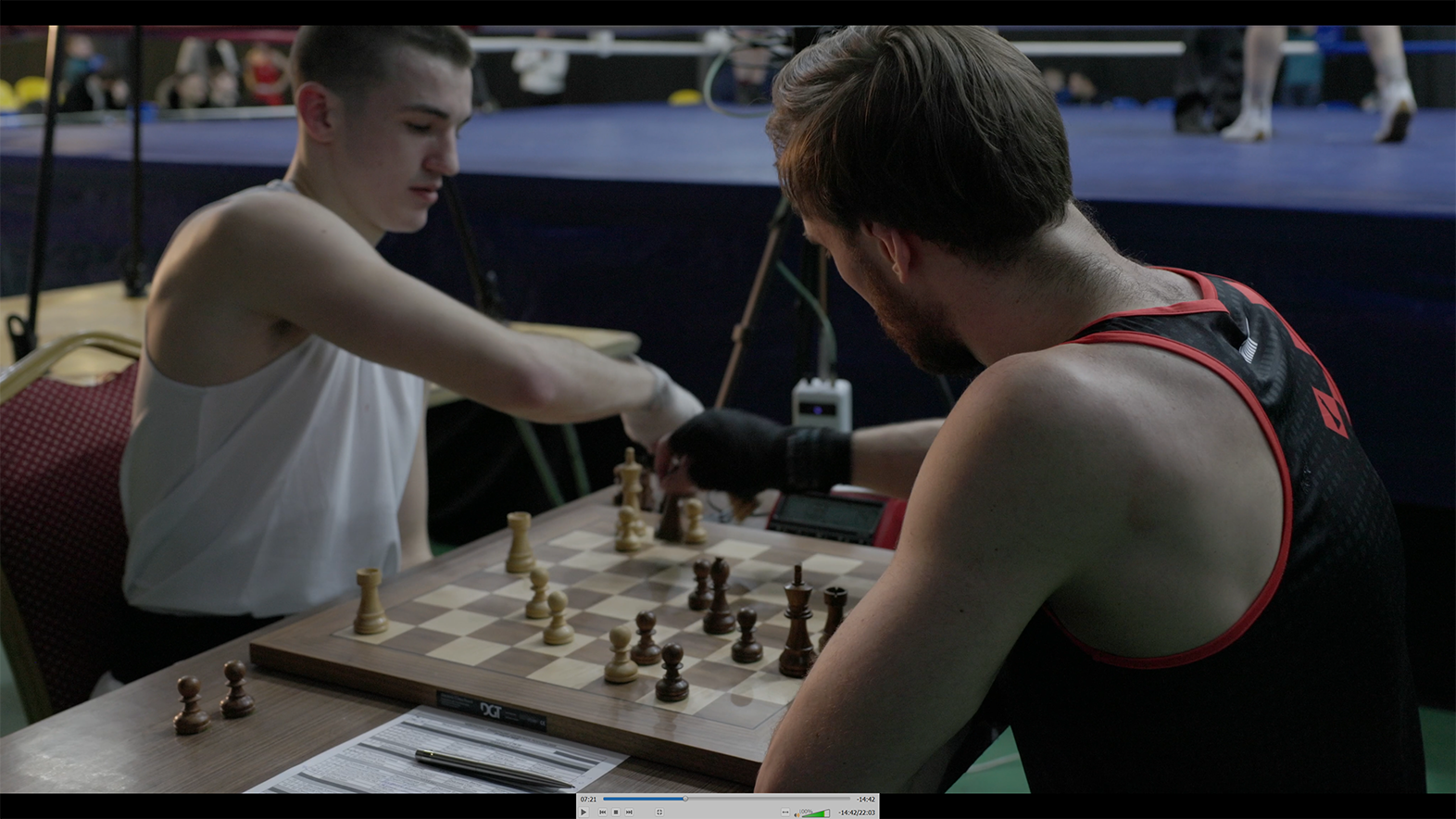 Где могут встретиться врач-кардиолог, кулачный боец, пенсионер и камерунец? На чемпионате России по шахбоксу! После шахматной партии соперники надевают перчатки и борются за звание чемпиона в ринге. Что привело их в этот спорт? Какой шахматной фигурой себя представляют боксеры? Кто победит нокаутом, а кого победят матом?